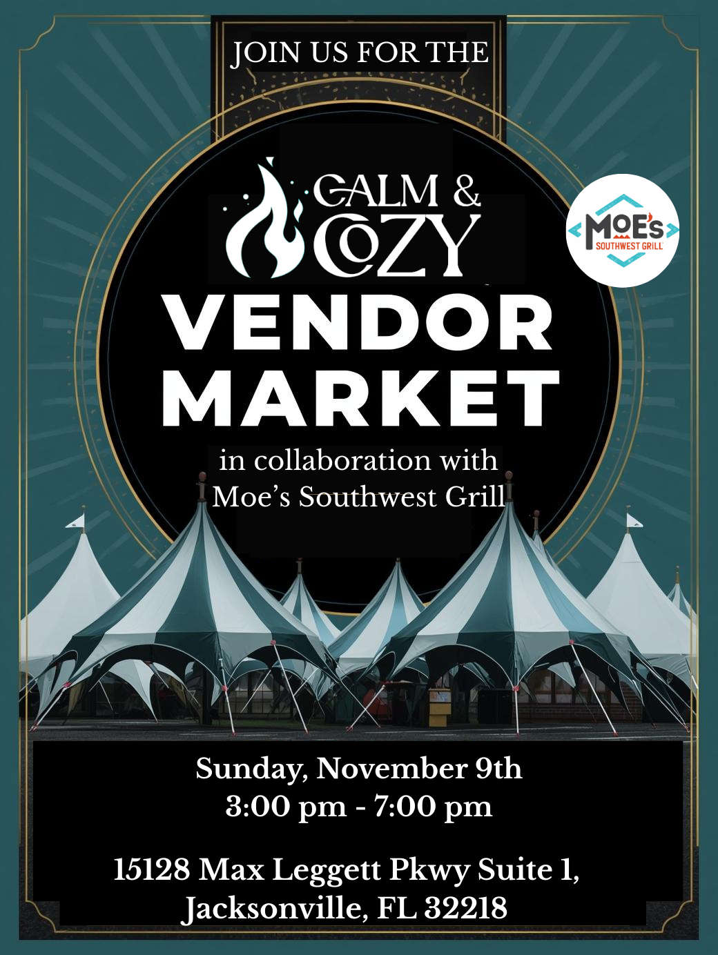 This November, the Calm & Cozy Holiday Markets are spreading cheer, charm, and cozy vibes all across Jacksonville and the surrounding areas! We're inviting incredible vendors like you to join us for the holiday season.