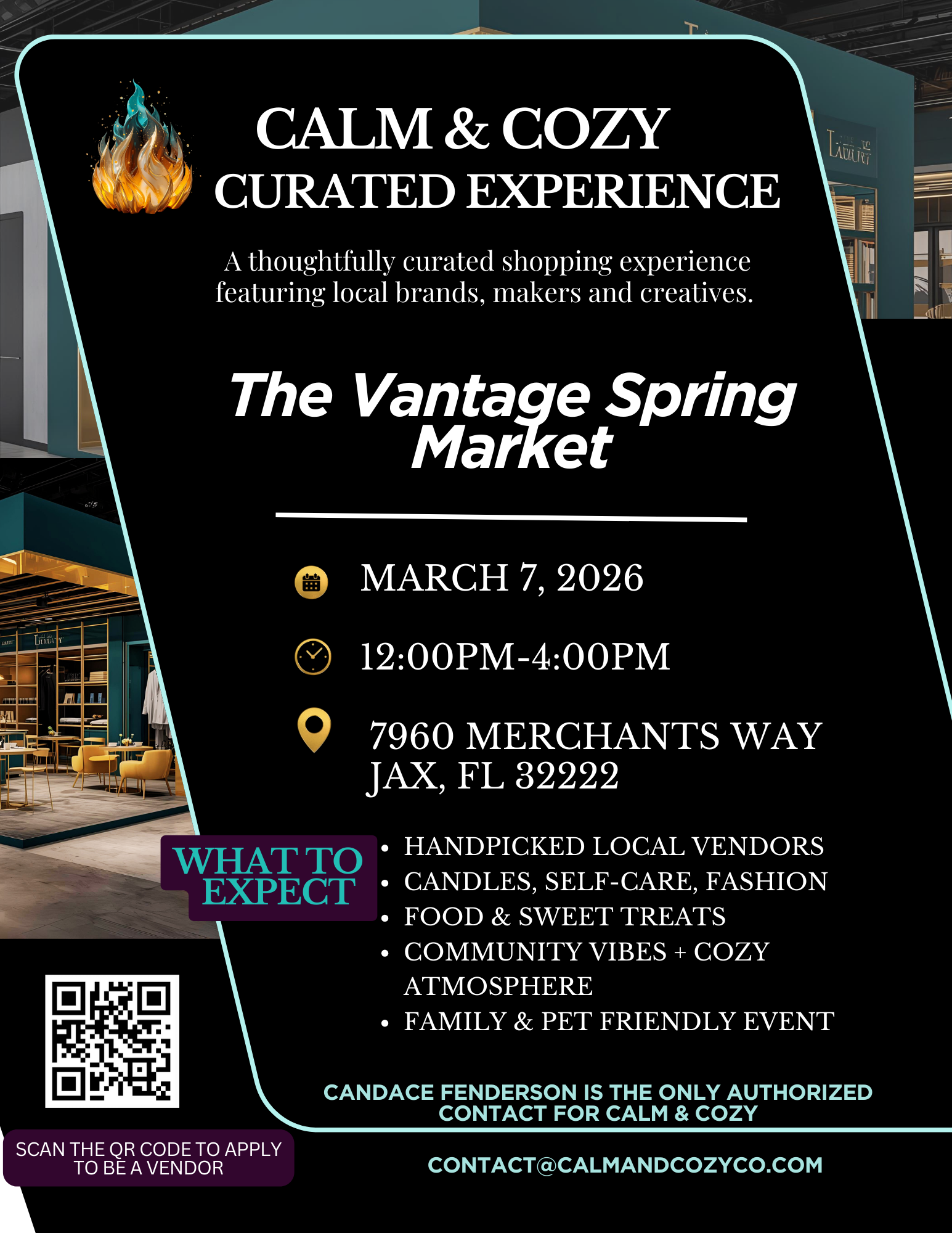 Kick off the New Year with the Calm & Cozy 2026 Markets. We are spreading cheer, charm, and cozy vibes all across Jacksonville and the surrounding areas! We're inviting incredible vendors like you to join us for the holiday season.
